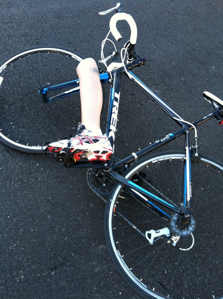 “Hey, you’ll never believe what I saw today. Some old guy fell off his bike. His leg came right off…. ya…. and it was still attached to his bike!”