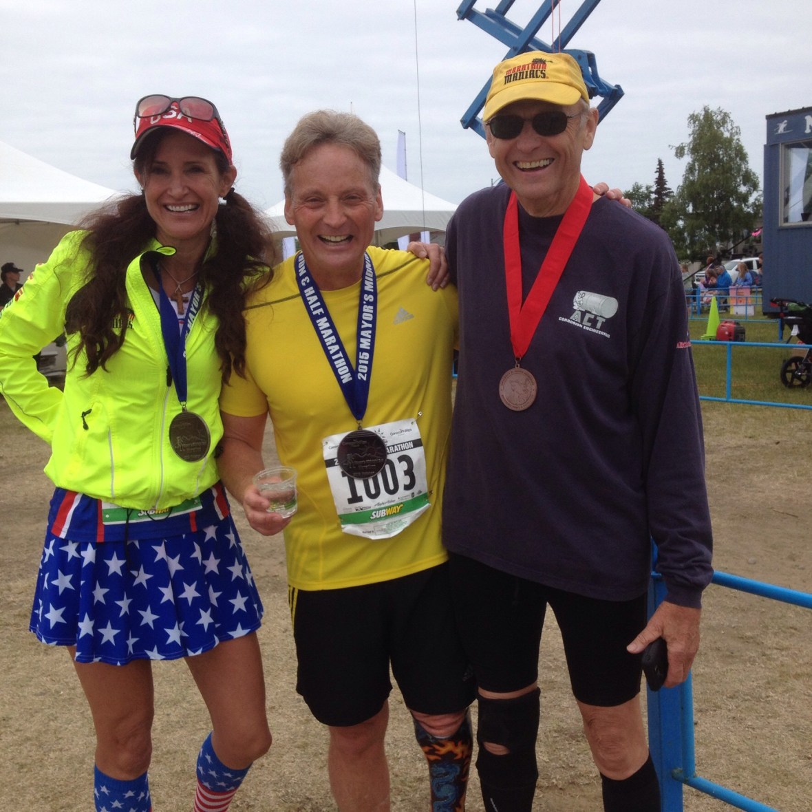 The course was challenging but extremely beautiful. I felt strong at this race. I’ve added a whole stretching routine to my workout and have really improved my diet. Had IMG_3304to slow down on a little part of the course that was a narrow, uneven dirt trail. Friction and rubbing on that kind of terrain is always hard on my stump. Lynette, Susan and Chucks sister, Gwen were great cheerleaders. They made signs and rang bells at the 22 mile mark. I finished in 5:26. After the race I quickly jumped in the car and we drove to the city of Seward to go on a wildlife/glacier dinner cruise.