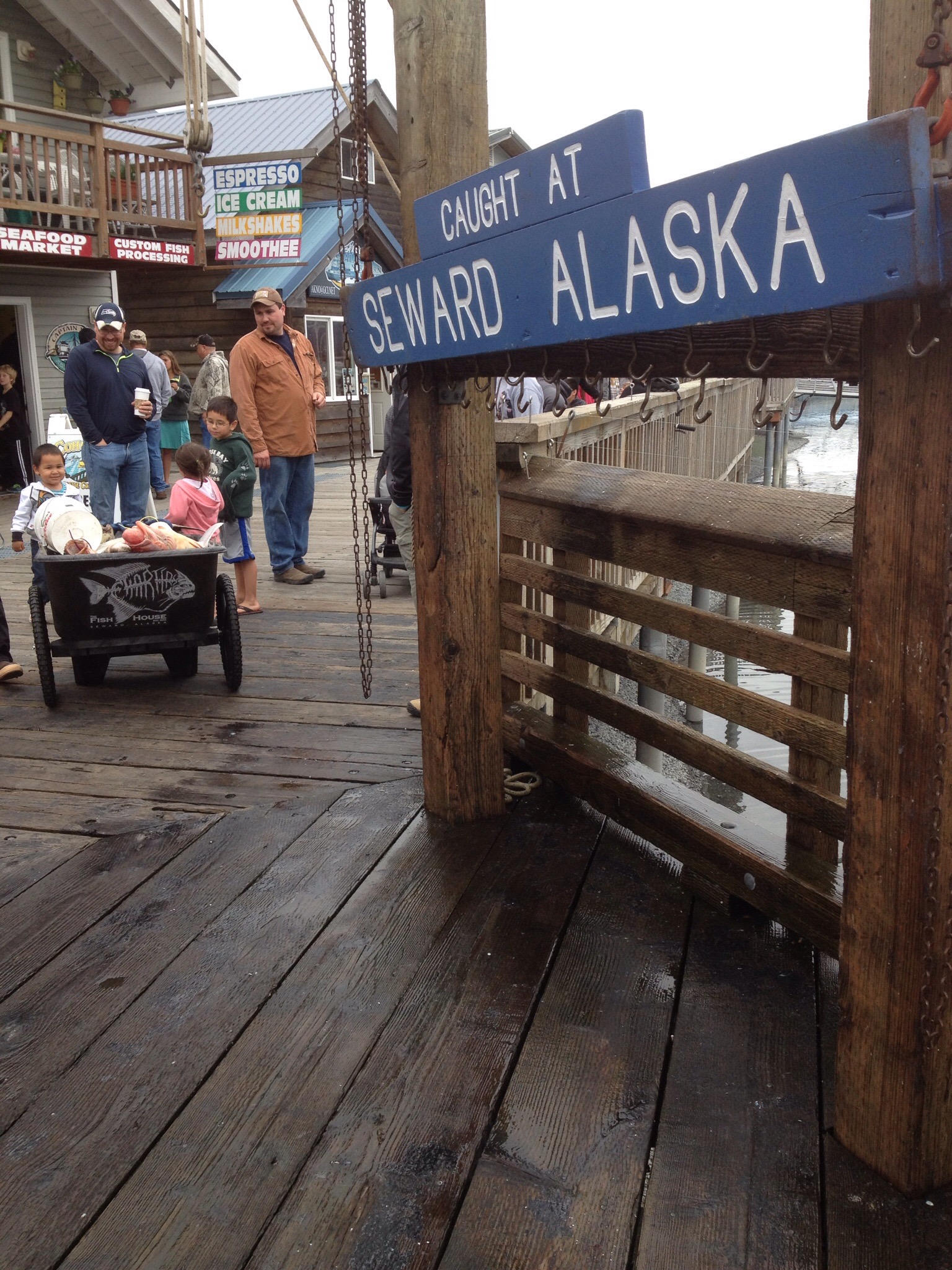 IMG_1130The 3 hour drive to Seward was indescribable. It felt like the prettiest parts of Utah, Wyoming and Montana on steroids. We saw plenty of the locals. By locals I mean moose and other wildlife. Communities along the way were celebrating solstice festivities with bands and booths. We arrived at the harbor just in time to see some of the giant halibut and other fish that people caught and were preparing right there on the outside tables. We climbed into the boat for the cruise from Resurrection Bay to Fox Island. For dinner we gorged ourselves on fresh salmon, king crab and prime rib at the buffet on Fox Island.